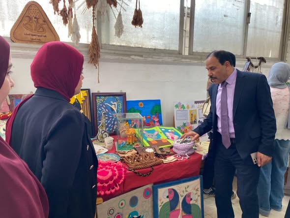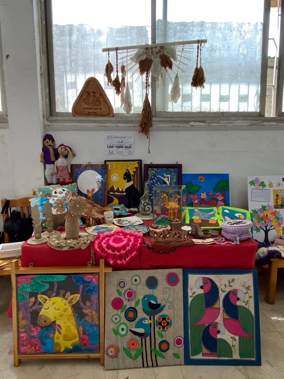 وقد شاركت الكلية فى مجال الصناعات الصغيره (الجلد - خيش -إعادة تدوير الورق - المكرميات )