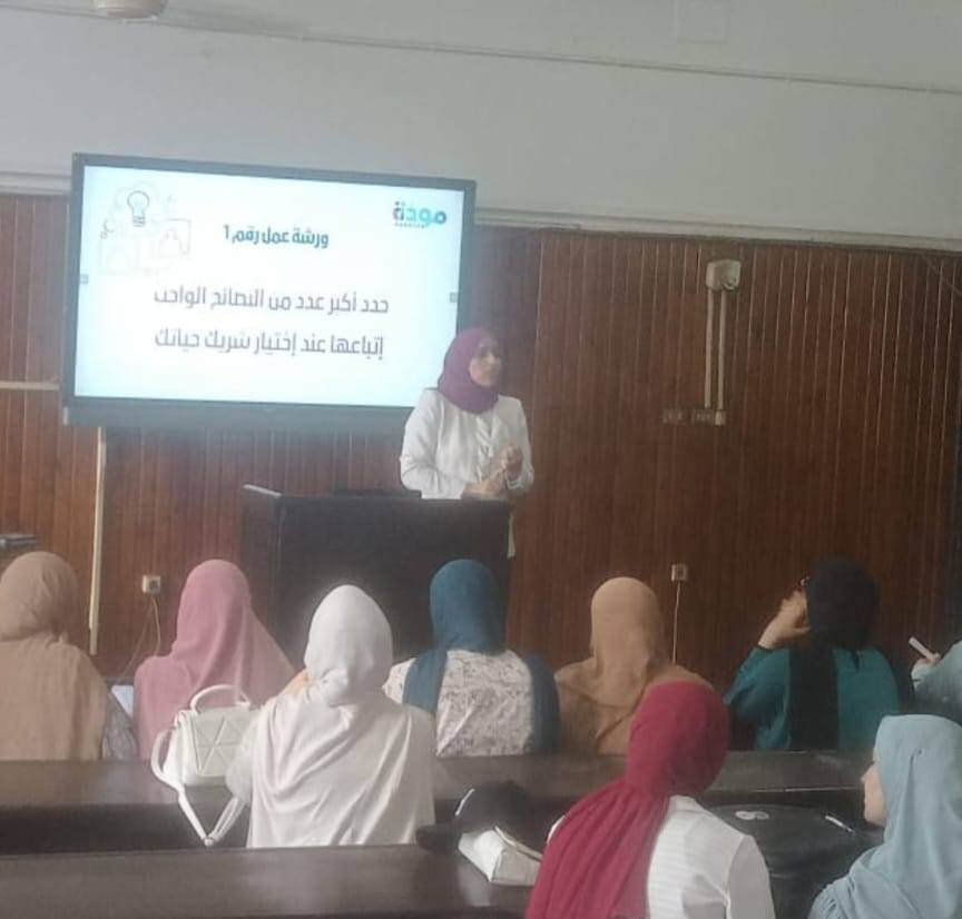 ظمت كليه التمريض ندوه تأهيل المقبلين علي الزواج لتزويد الشباب بالمهارات والمعارف اللازمه للزواج برنامج ( موده )