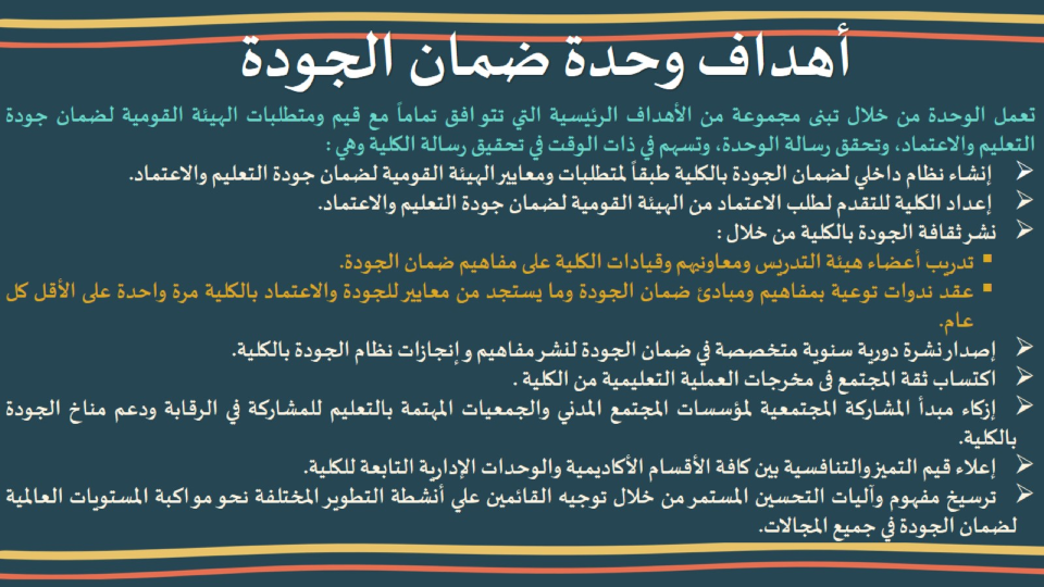 الرؤية والرسالة والأهداف _ وحدة ضمان الجودة