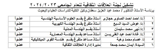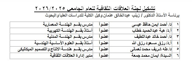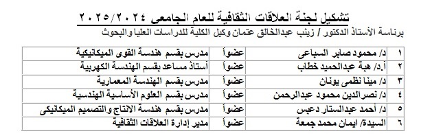 تعقد لجنة العلاقات العلمية  والثقافية الخارجية يوم الاحد الاول من كل شهر الساعة العاشرة صباحا .