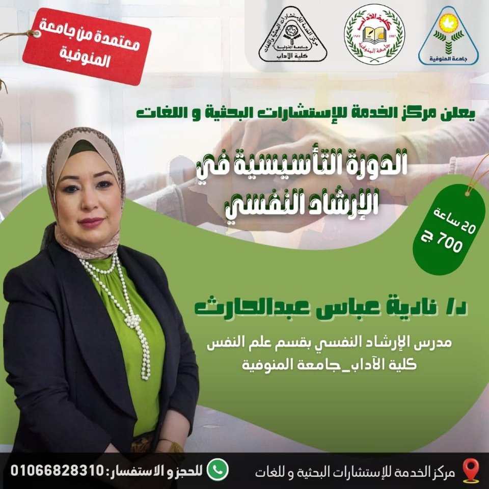 يعلن مركز الخدمة العامة للاستشارات البحثية واللغات بكلية الآداب - جامعة المنوفية عن تنفيذ دورة تدريبية " مهارات التواصل الفعال "