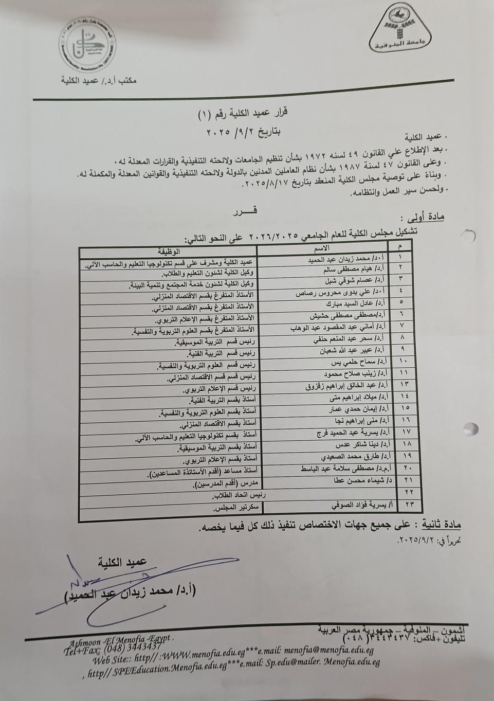 أعضاء مجلس كلية التربية النوعية جامعة المنوفية هنا