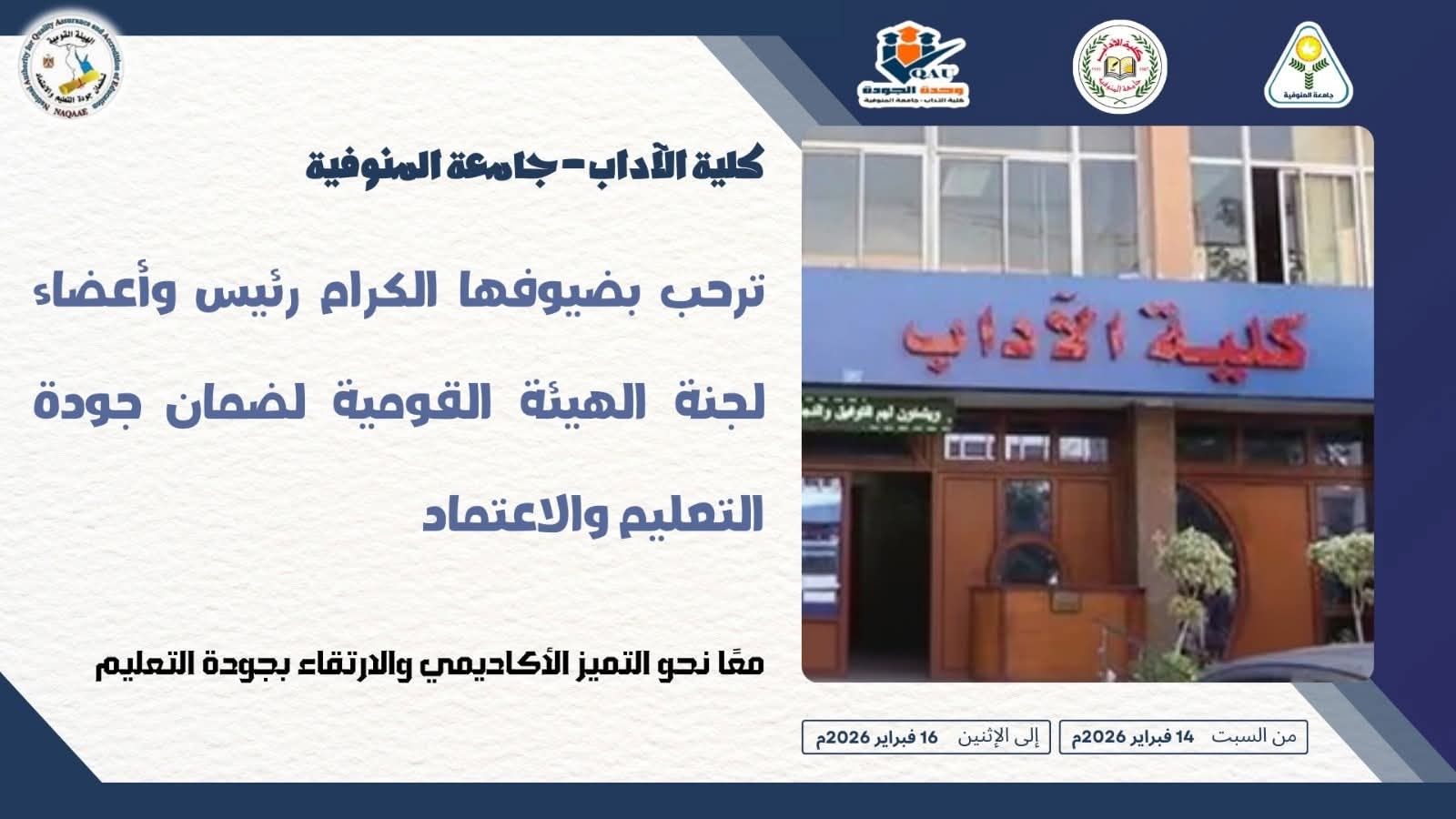 أسرة كلية الآداب ـ جامعة المنوفية ترحب بالسادة أعضاء لجنة الهيئة القومية لضمان جودة التعليم والإعتما