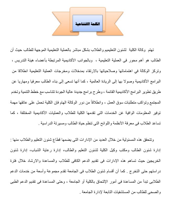 كلمة وكيل الكلية لشؤن التعليم والطلاب