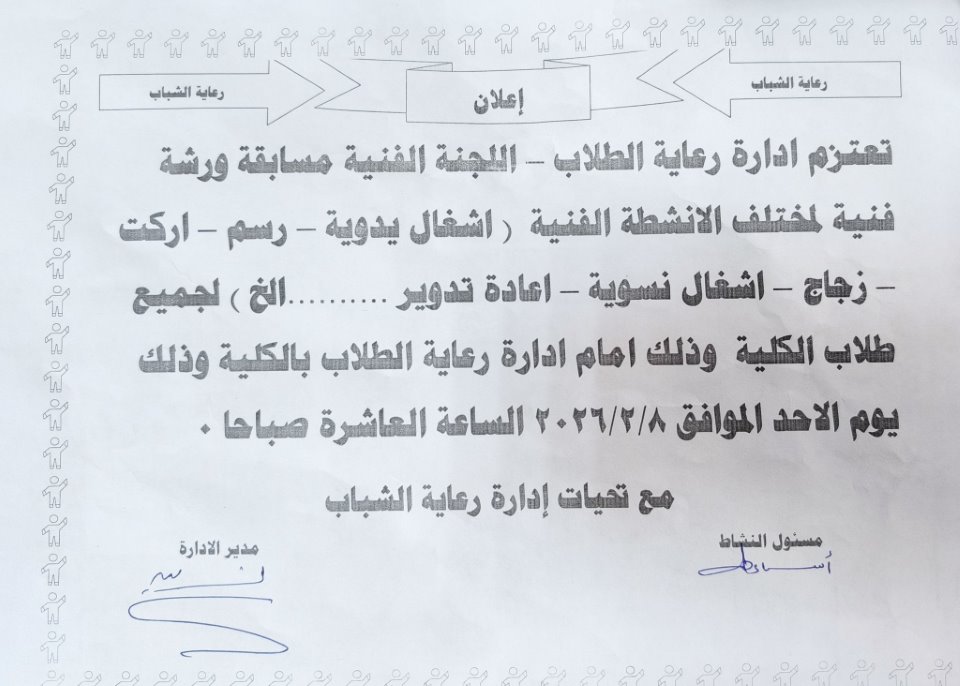 اعلان عن مسابقة ورشة فنية لمختلف الانشطة الفنية