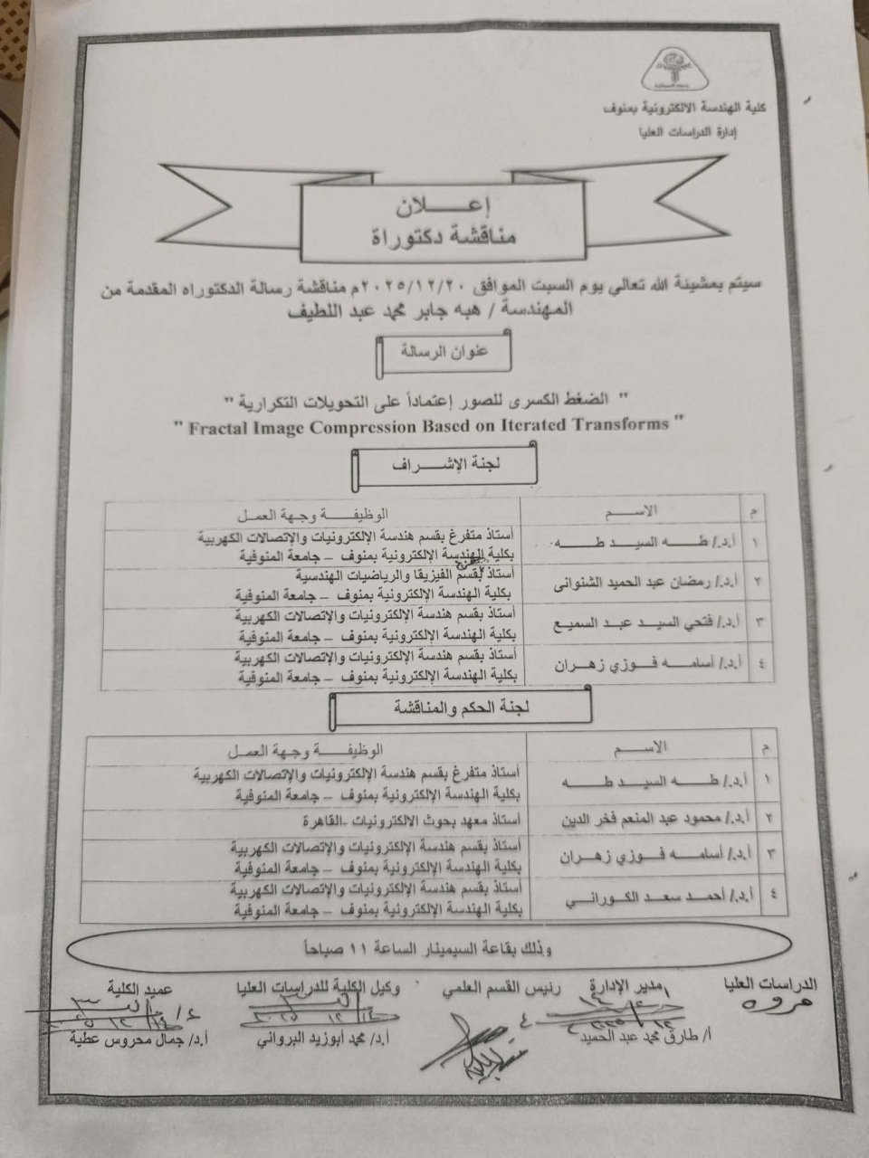 مناقشة رسالة دكتوراه للمهندسه / هبه جابر محمد عبد اللطيف